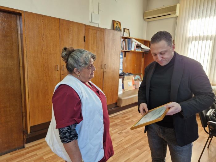 Днес Йорданка Георгиева Димитрова, санитар в УМБАЛ „Царица Йоанна – ИСУЛ“, получи специална грамота за гражданска доблест от изпълнителния директор на болницата Любомир Пенев.